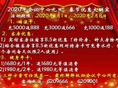喜迎2020年,离春节也只剩22天的时间。太选会议中心筹划的优惠活动已然开始了。此外,还有特色火锅年夜饭还在预订中。想要住宿、开年会找场地、游泳健身、订年夜饭。举办婚礼等...