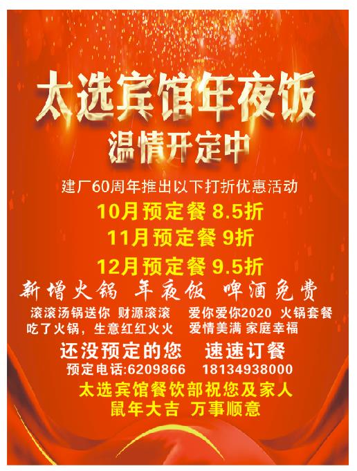 太选宾馆年夜饭 温情开定中
